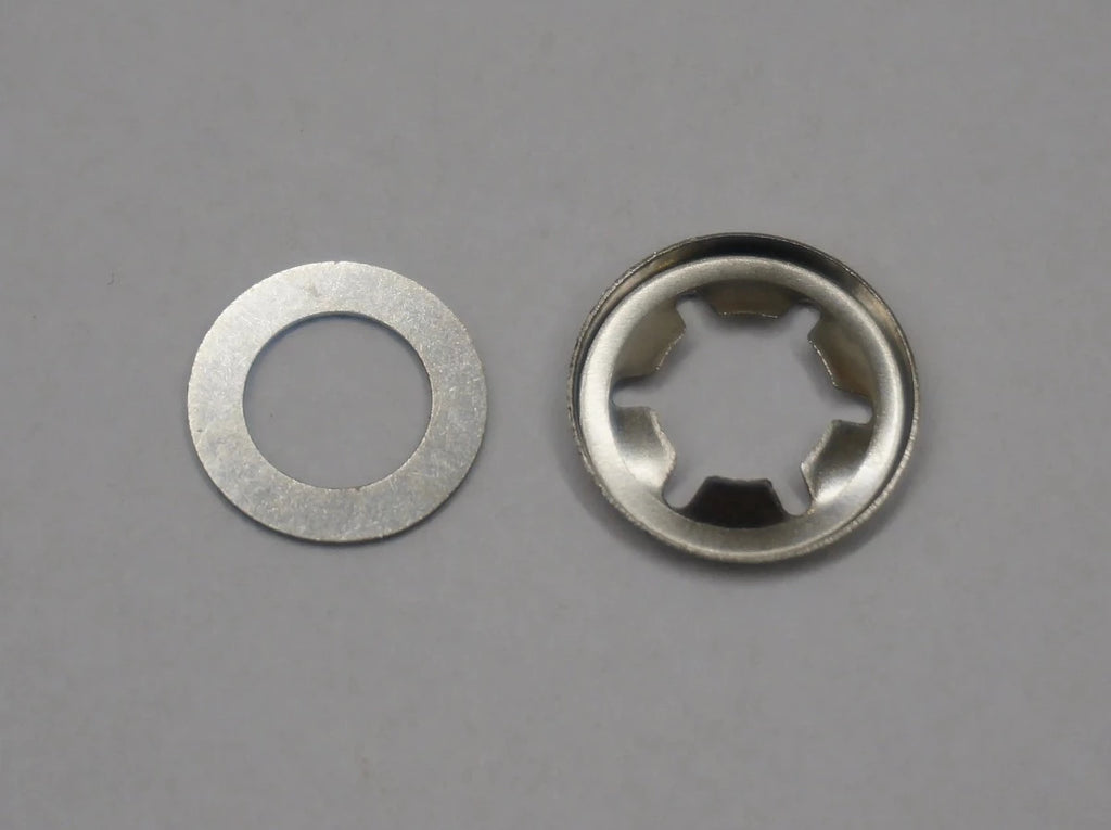 Lock washer in stainless steel including underlying washer for the front wheel axle for large models of Husqvarna Automower